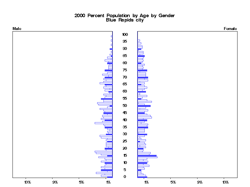 | Blue Rapids city 2000 Population by Age by Gender | |||||