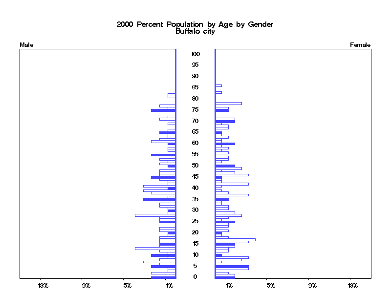 | Buffalo city 2000 Population by Age by Gender | |||||