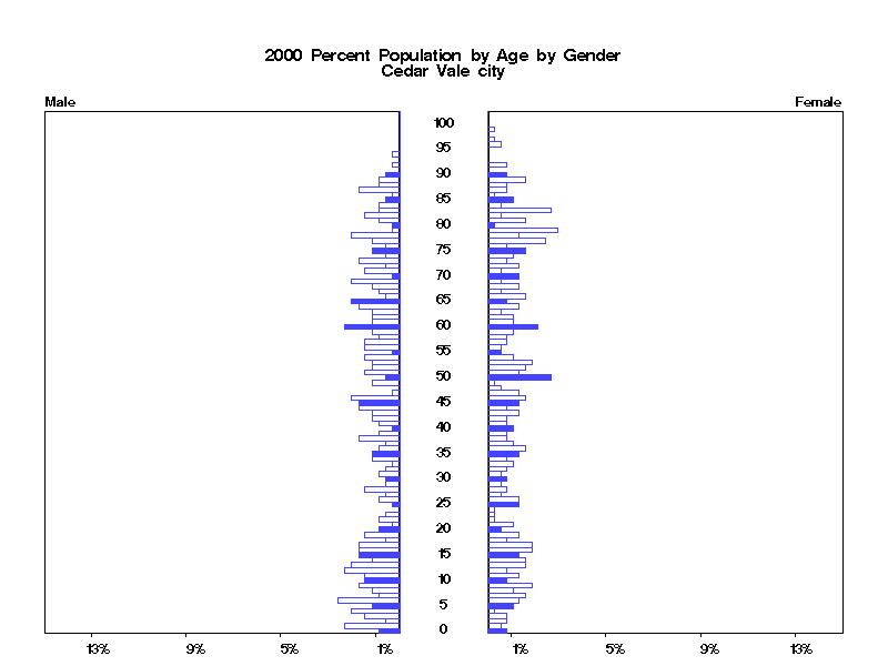 | Cedar Vale city 2000 Population by Age by Gender | |||||