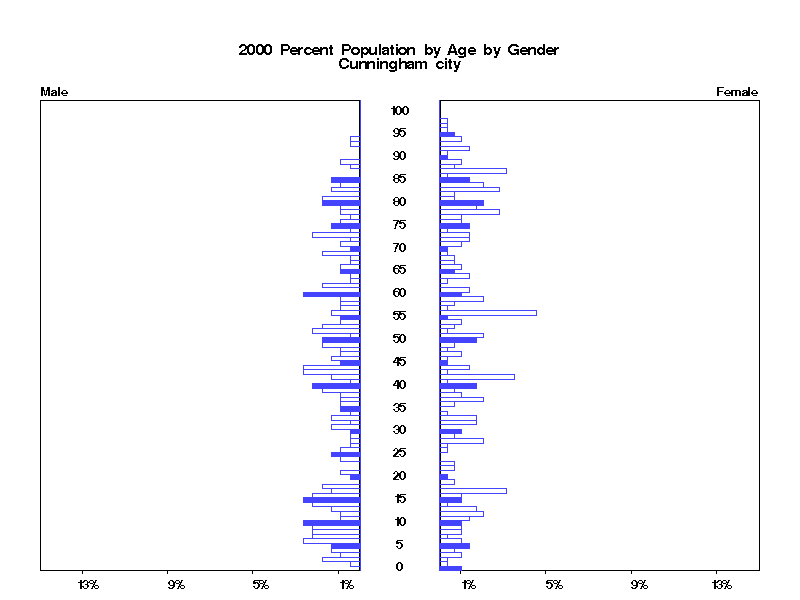 | Cunningham city 2000 Population by Age by Gender | |||||