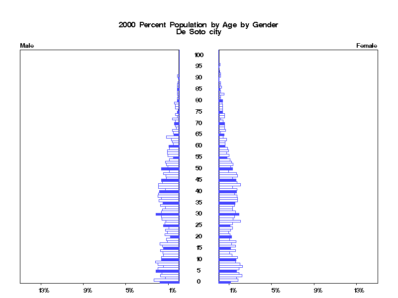 | De Soto city 2000 Population by Age by Gender | |||||