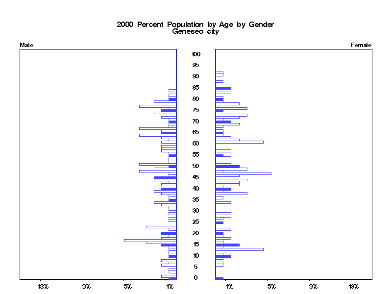 | Geneseo city 2000 Population by Age by Gender | |||||