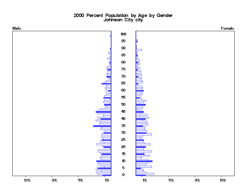 | Johnson City city 2000 Population by Age by Gender | |||||