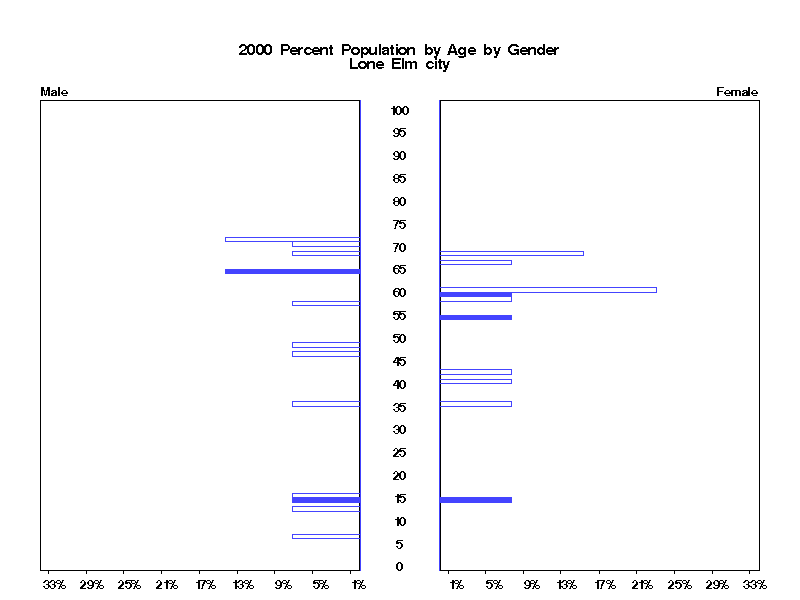 | Lone Elm city 2000 Population by Age by Gender | |||||