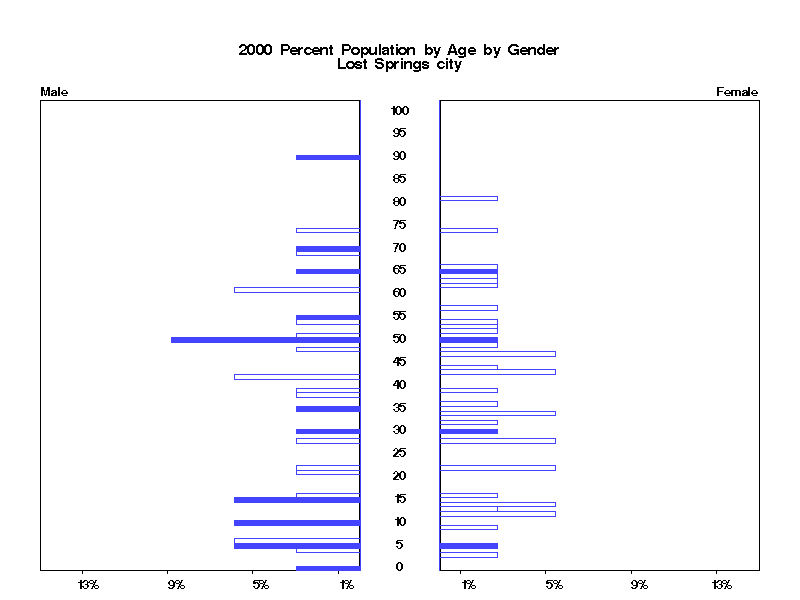 | Lost Springs city 2000 Population by Age by Gender | |||||