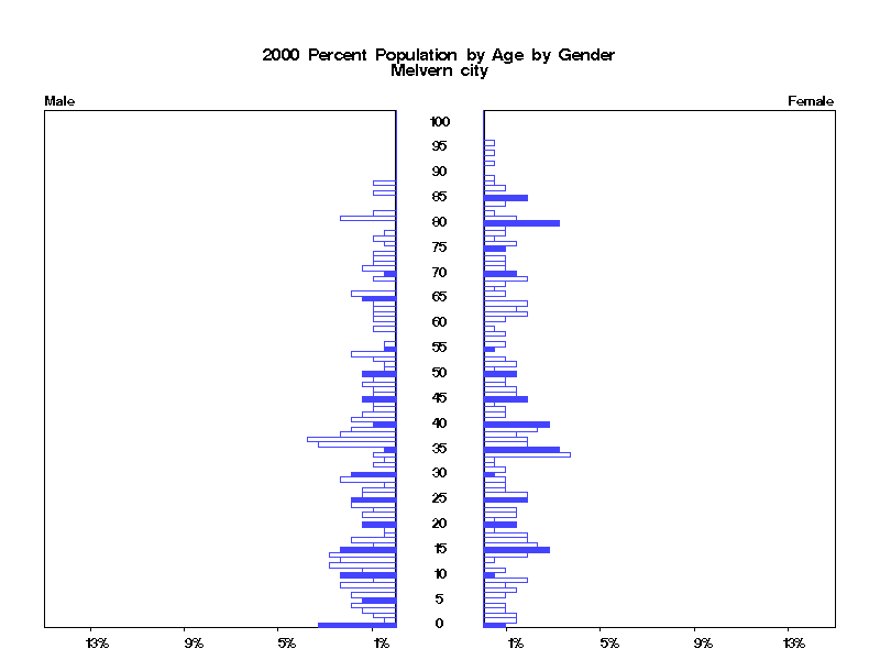 | Melvern city 2000 Population by Age by Gender | |||||