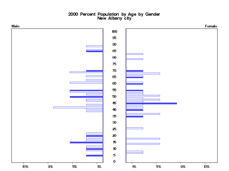| New Albany city 2000 Population by Age by Gender | |||||