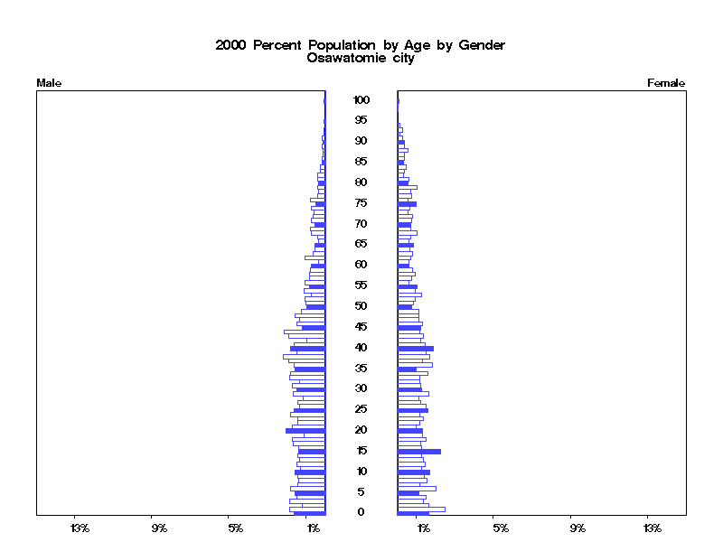 | Osawatomie city 2000 Population by Age by Gender | |||||