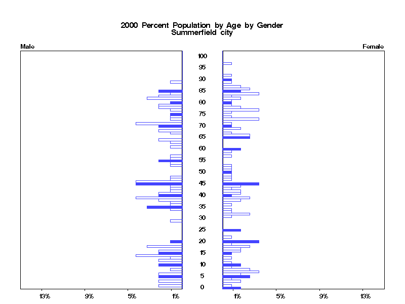 | Summerfield city 2000 Population by Age by Gender | |||||