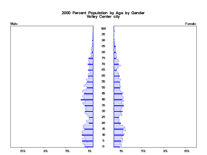 | Valley Center city 2000 Population by Age by Gender | |||||