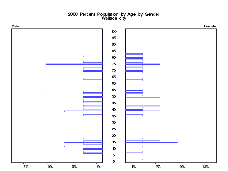 | Wallace city 2000 Population by Age by Gender | |||||
